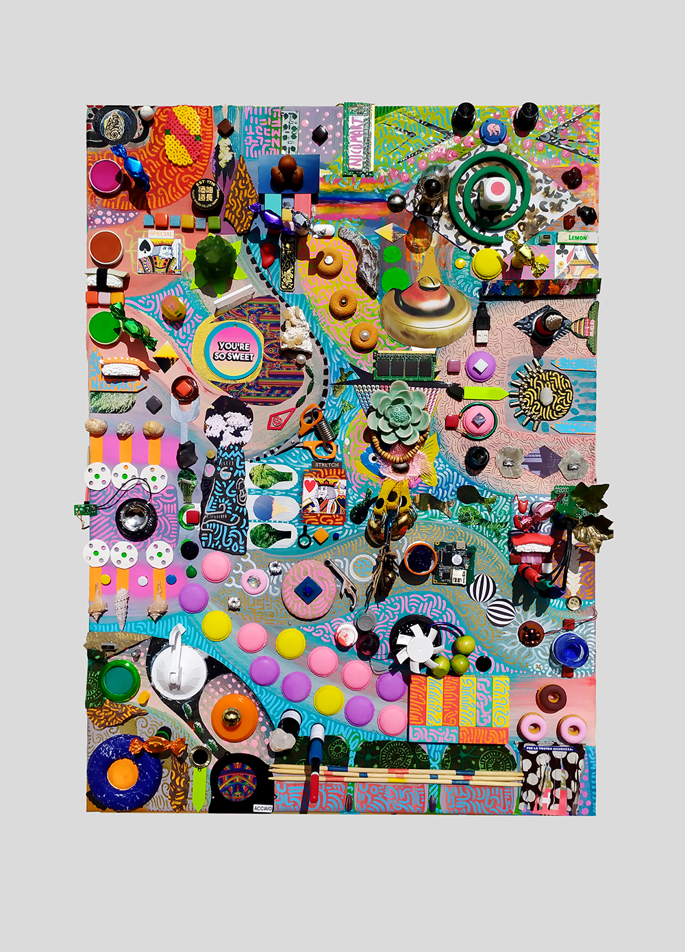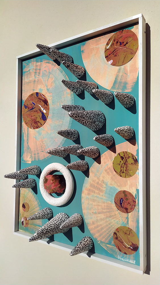 La sua espressione artistica è un unione di più tecniche e stili.